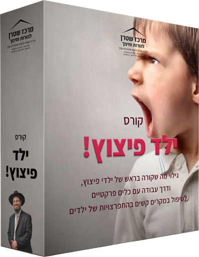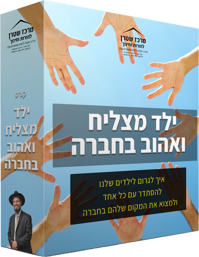 הקורס היחידי בארץ מסוגו להכשרת הורים מטפלים שיתן לך בעז"ה: 1. 'עיני רנטגן' לזהות סימני מצוקה שהילד משדר אליך בלי שאתה שם לב 2. יכולת לבנות 'קשר טיפולי' עם הילד שלך, שהוא יאמין ויבטח בך וישתף אותך בכל סודותיו 3. 'ידי מטפל' שתוכל בעצמך להוציא את הילד שלך ממצוקות וחרדות ועוד בעיות בלי לחשוש שאתה פוגע בנפשו חלילה.